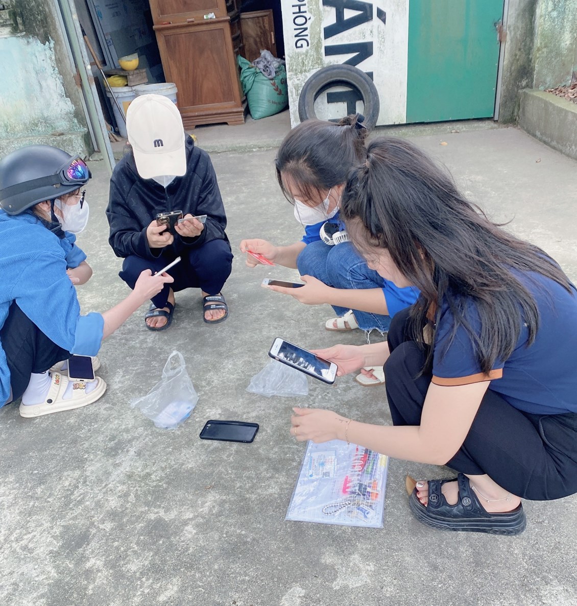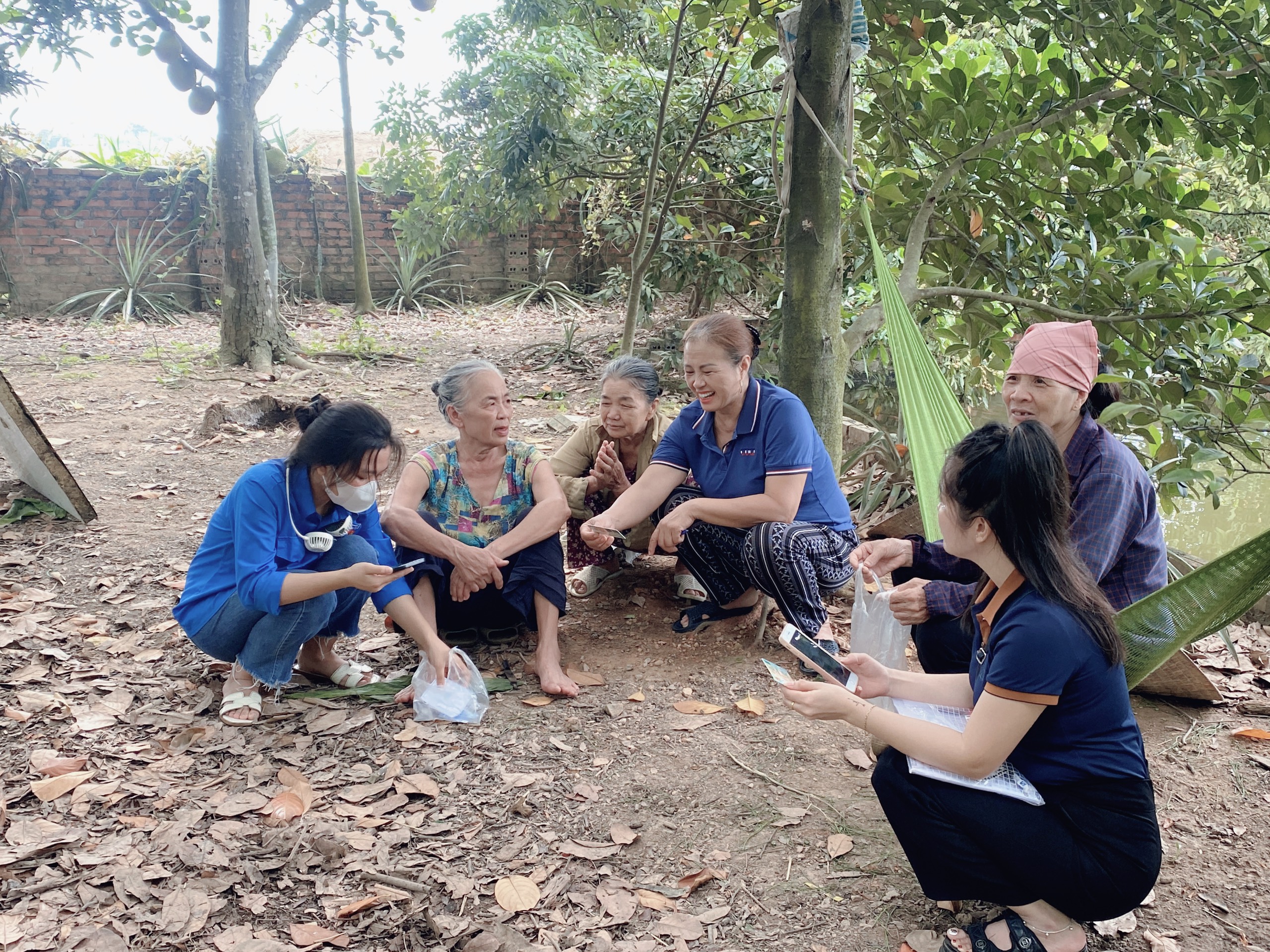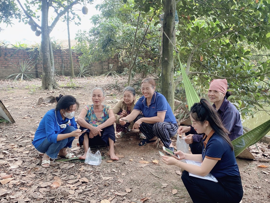 ( Cô giáo Đặng Thị Xuyên cùng các cô đoàn viên thanh niên vào tận nhà hỗ trợ nhân dân )