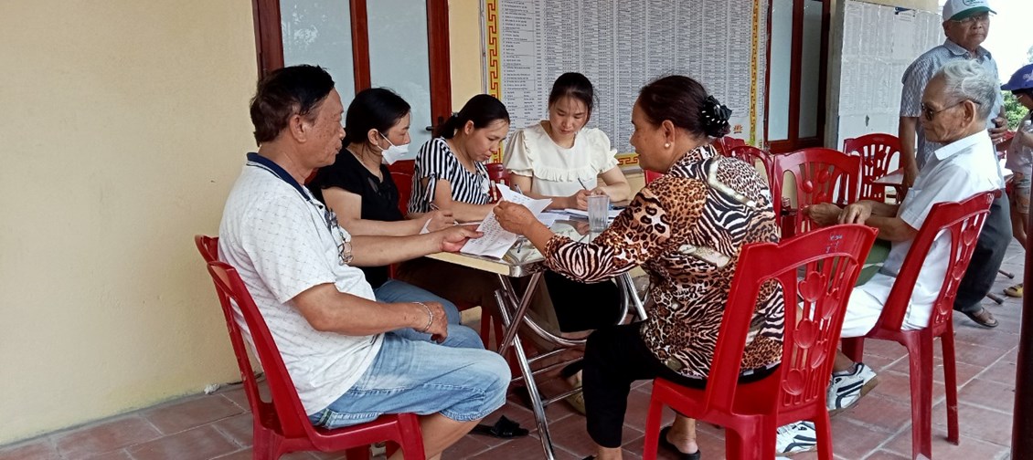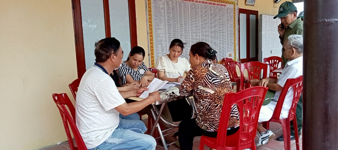 ( Cô Vũ Thị Thắm hỗ trợ bà con nhân dân tại UBND xã Quốc Tuấn)