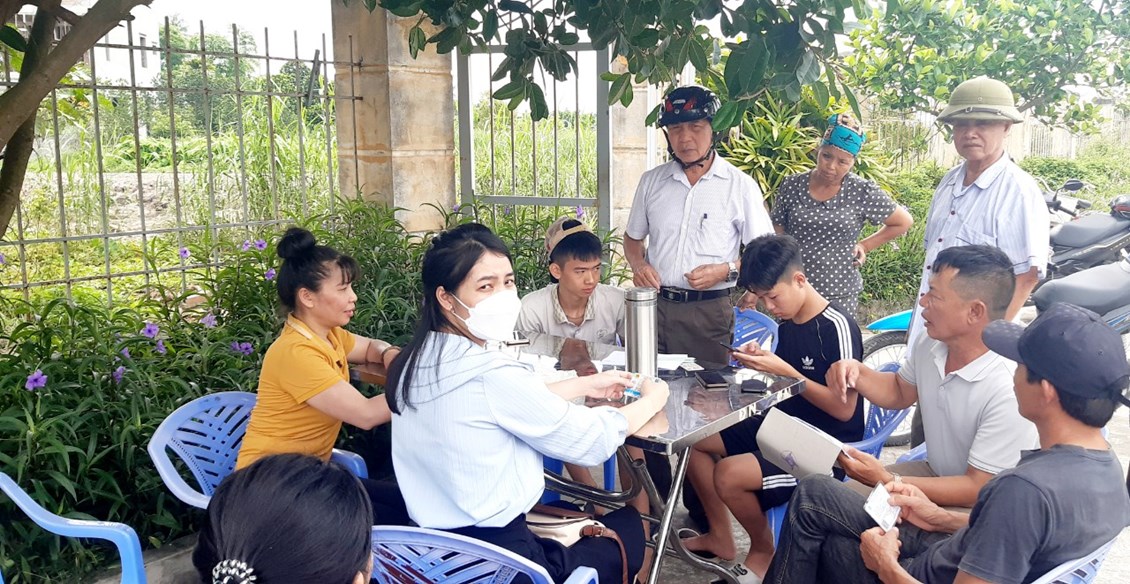 ( Cô giáo Nguyễn Thị Quyền hướng dẫn bà con nhân dân tại thôn Đông Nham II)