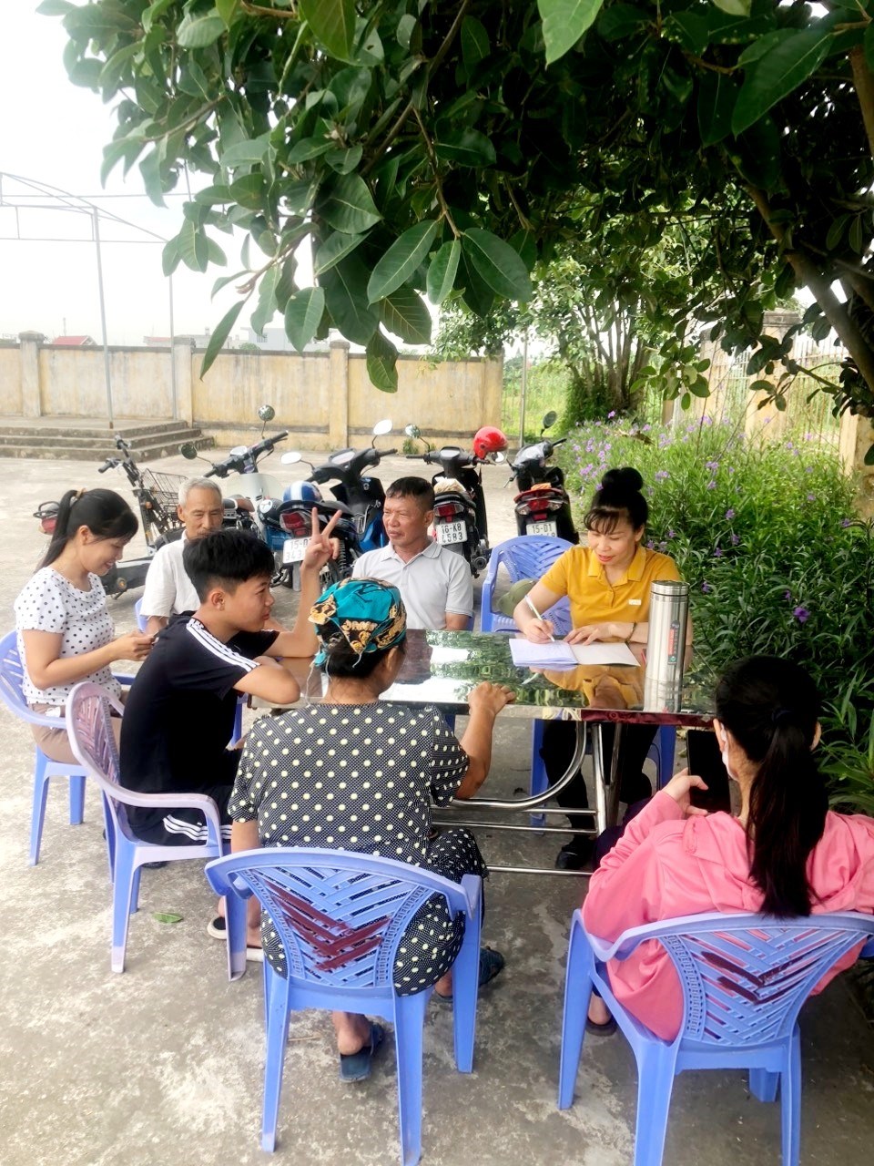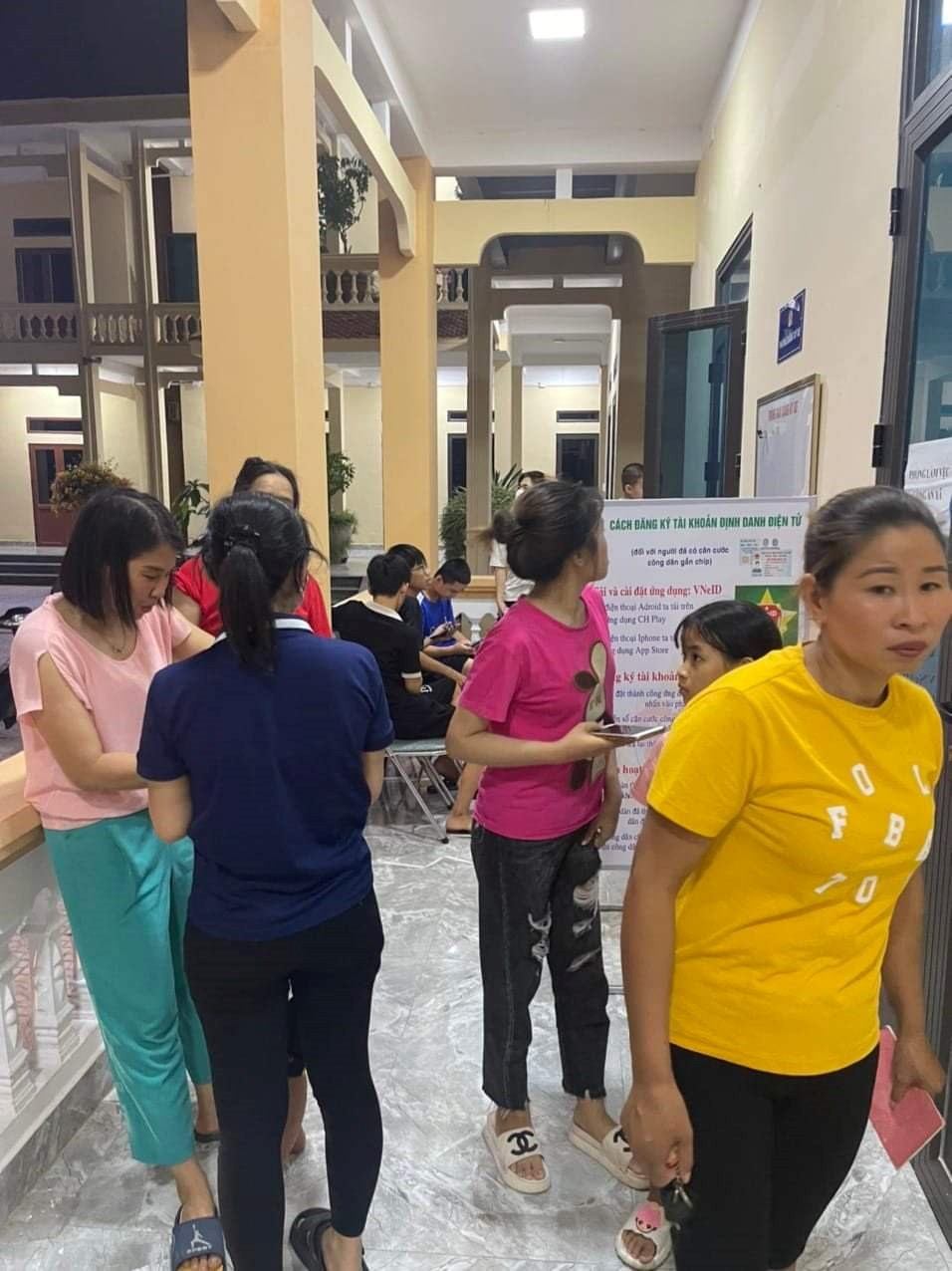 ( Cô giáo Bùi Thị Phương hướng dẫn và giúp bà con nhân dân kích hoạt tài khoản định danh điện tử tại thôn Đông Nham II)