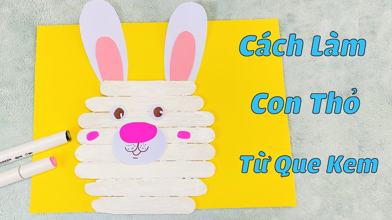 Cách làm đồ chơi bằng que kem thành hình chú thỏ đáng yêu: