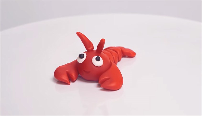 - Bước 3: Sử dụng đất nặn màu để để làm 2 chiếc càng và 2 chiếc râu tôm, sau đó dùng đất nặn trắng để làm phần mắt và gắn vào phần đầu rồi nặn 2 hình tròn nhỏ màu đen và gắn vào phần lòng trắng là đã hoàn thành.