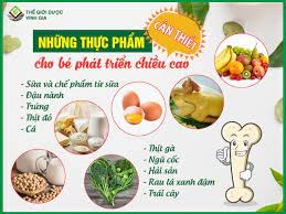 Đậu nành, cam, các loại đậu, cá, rau xanh, thịt và sản phẩm từ sữa chứa nhiều canxi giúp xương của trẻ chắc khỏe.