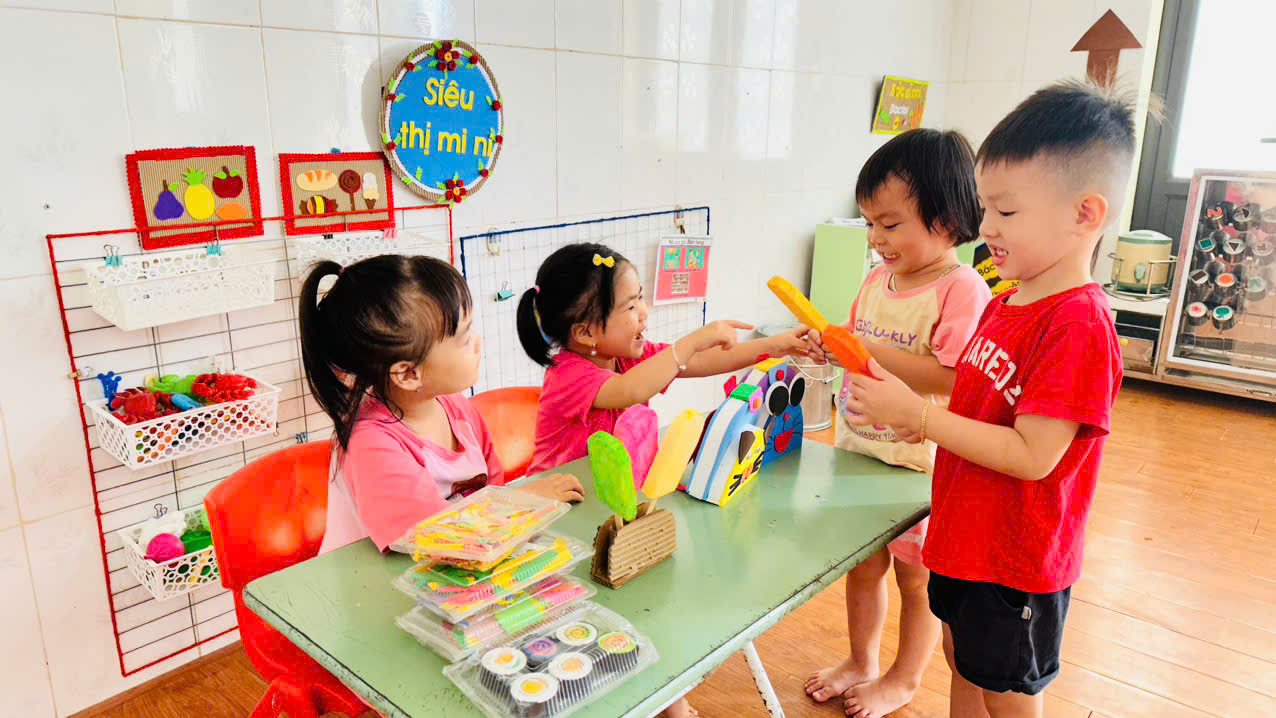 Cùng quan sát các bé lớp mẫu giáo 4 tuổi B2 tham gia vào hoạt động góc, chúng ta sẽ thấy rõ hơn một “ xã hội người lớn thu nhỏ” được miêu tả một cách sinh động, sáng tạo và đầy chất trẻ thơ.