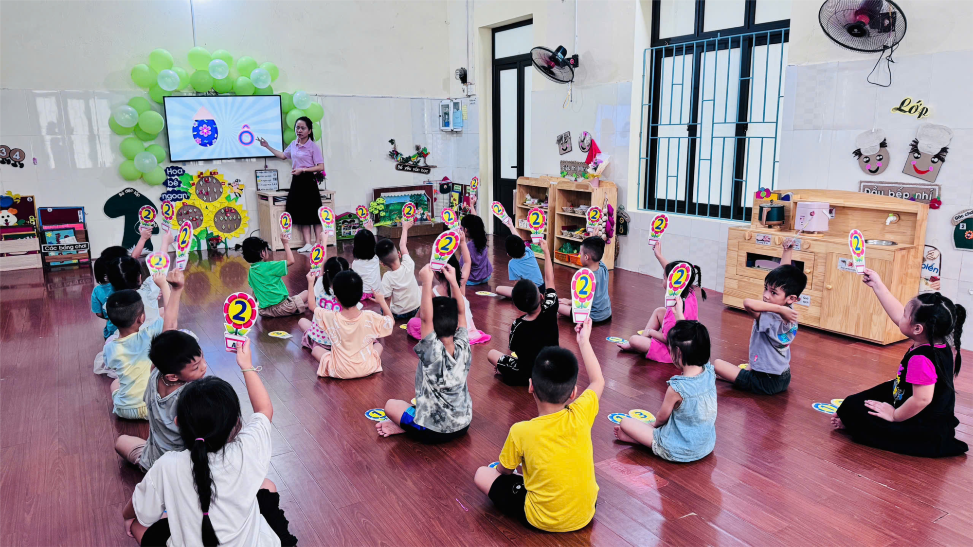 Không khí lớp học luôn sôi nổi và hào hứng. Trẻ em vừa học vừa chơi, tham gia các hoạt động nhóm nhỏ dưới sự hướng dẫn tận tình của cô giáo. Mỗi buổi học đều được thiết kế theo phương pháp “Học bằng chơi, chơi mà học”, khiến trẻ cảm thấy vui vẻ, thoải mái và tự tin.
