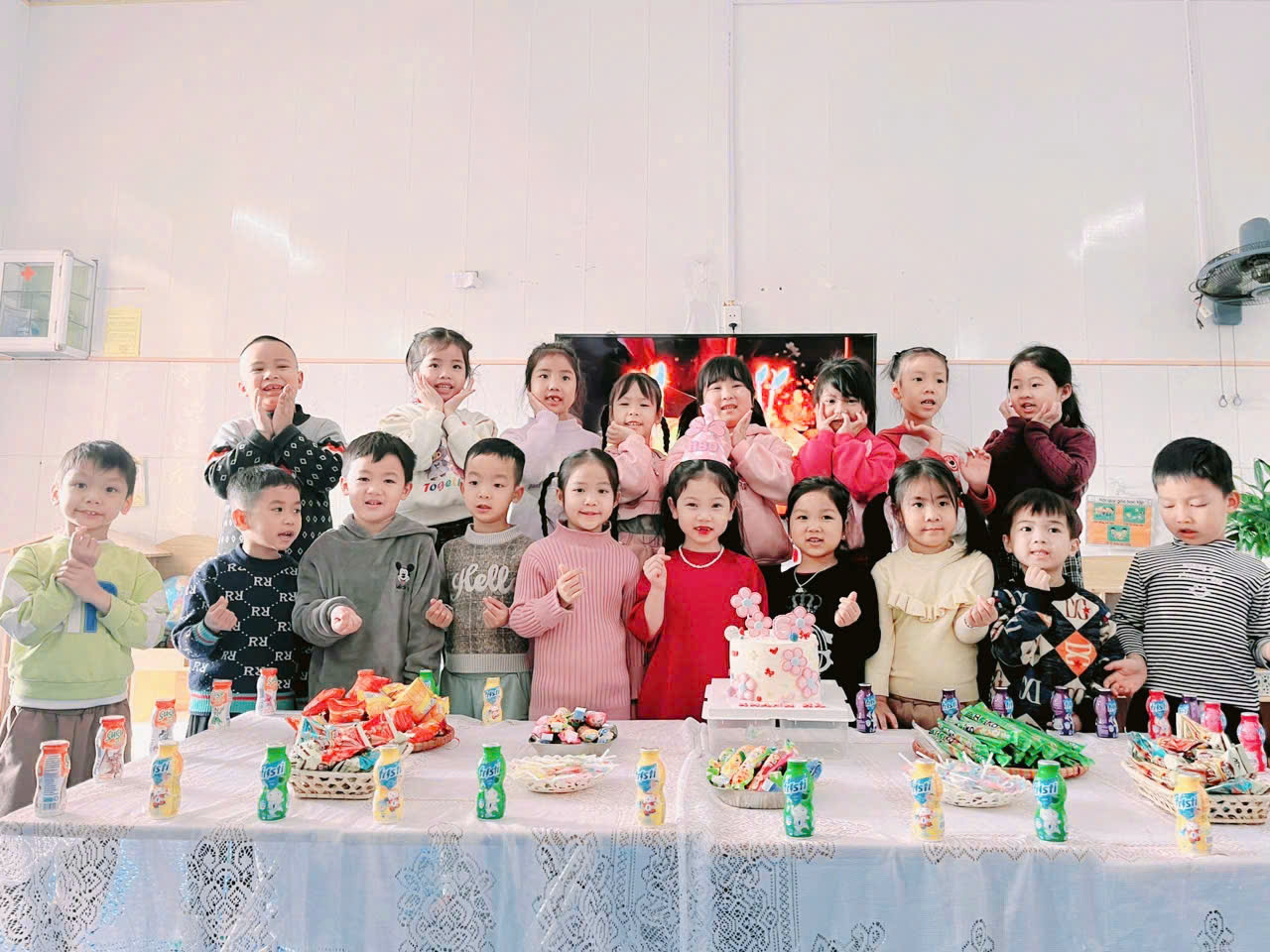 Hàng ngày khi đến trường các con không chỉ được vui chơi với bạn bè mà còn được các cô yêu thương chăm sóc, dạy dỗ. Các cô luôn tạo cho các con môi trường vui vẻ, thân thiện, tạo không khí và tâm lý vui vẻ cho các con khi đến lớp thông qua việc tổ chức các hoạt động trên lớp hàng ngày. Hoạt động tổ chức sinh nhật cho các con cũng là một hoạt động rất ý nghĩa, giúp trẻ mạnh dạn, tự tin, thân thiện hơn khi giao tiếp hòa mình với các bạn trong buổi sinh nhật ngoài ra bữa tiệc sinh nhật tại lớp còn tạo cho trẻ sự vui vẻ phấn khích. Ở tầm tuổi này trẻ rất hiếu động và đặc biệt mong muốn nhận được sự quan tâm của người lớn xung quanh mình, bố mẹ và các cô giáo, vì vậy việc tổ chức tiệc sinh nhật ở trường mầm non sẽ lưu lại kỷ niệm và khoảnh khắc đẹp cho bé ở độ tuổi này. Cô giáo tổ chức sinh nhật cho bé ở lớp giúp các bậc phụ huynh không có nhiều thời gian tổ chức sinh nhật cho bé yêu nhưng vẫn có thể mang đến một ngày sinh nhật ý nghĩa và khó quên cho trẻ. Không những vậy tạo cảm giác thân thiện cho trẻ khi ở lớp cũng như ở nhà.