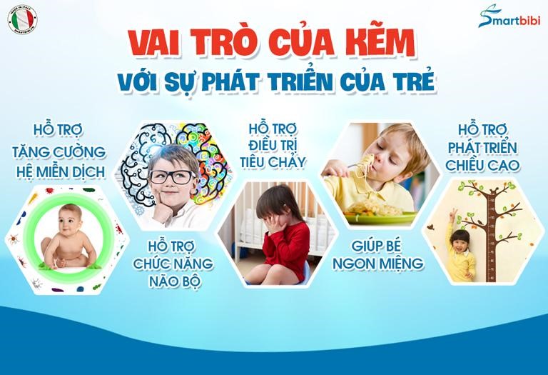 Kẽm là một vi chất dinh dưỡng cần thiết, có vai trò quan trọng đối với sức khoẻ. Kẽm tham gia vào hoạt động của các enzym, phân chia tế bào và phát triển cơ thể, tham gia vào chức năng miễn dịch, điều hoà vi giác, cảm giác ngon miệng.