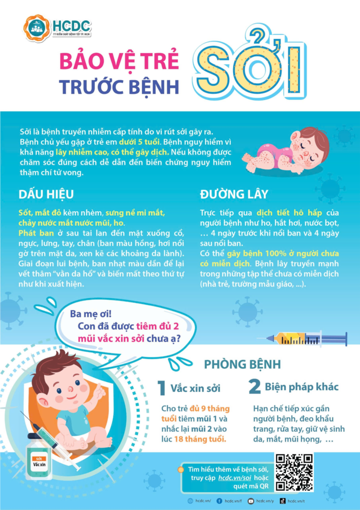 Sởi là bệnh truyền nhiễm cấp tính do vi rút sởi gây ra. Bệnh chủ yếu gặp ở trẻ em dưới 5 tuổi. Bệnh nguy hiểm vì khả năng lây nhiễm cao, có thể gây dịch.