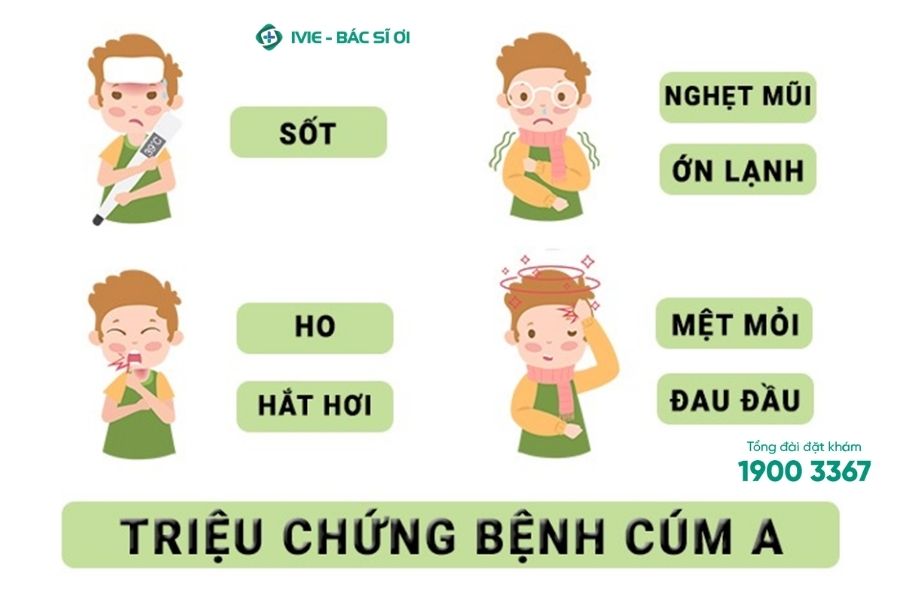 Khi bị cúm A, trẻ thường có các triệu chứng như: sốt cao (thường phổ biến ở trẻ dưới 24 tháng tuổi), nhức đầu, mỏi cơ, ho, lười vận động, chảy nước mũi, hắt hơi… Một số trường hợp, trẻ có thể bị nôn trớ nhiều lần, háo nước.