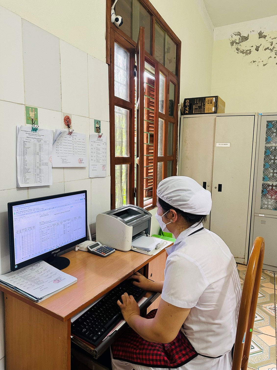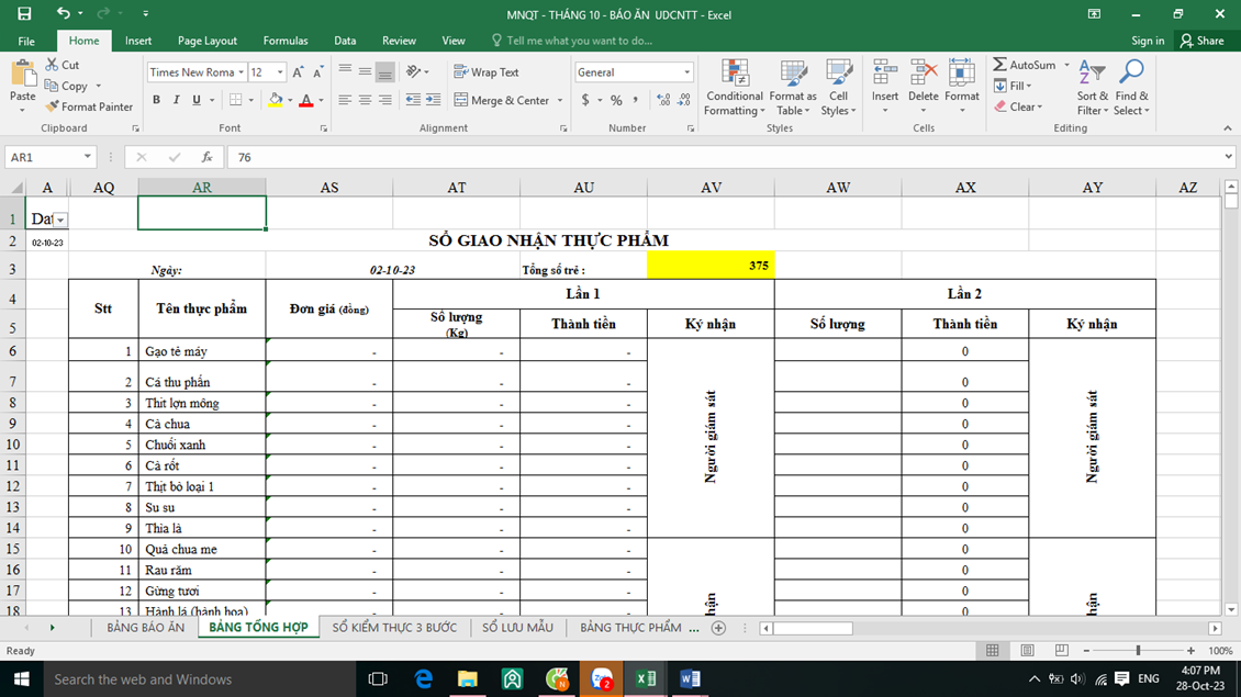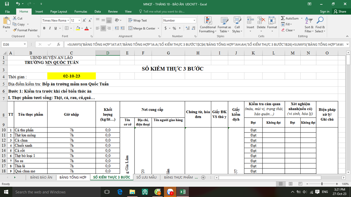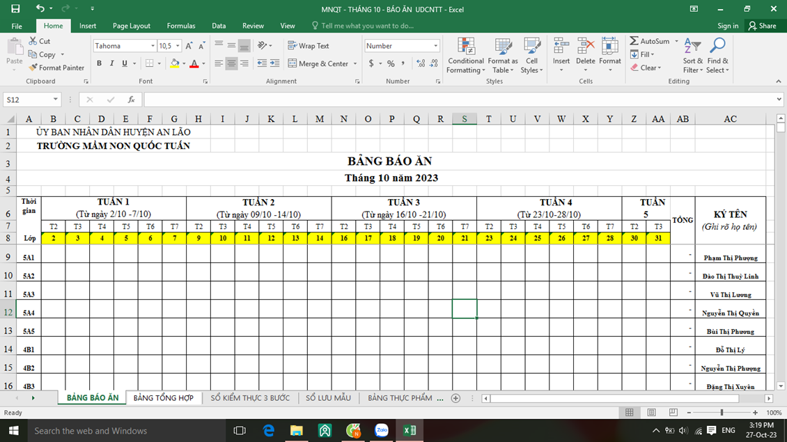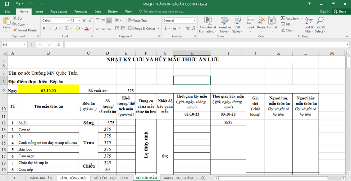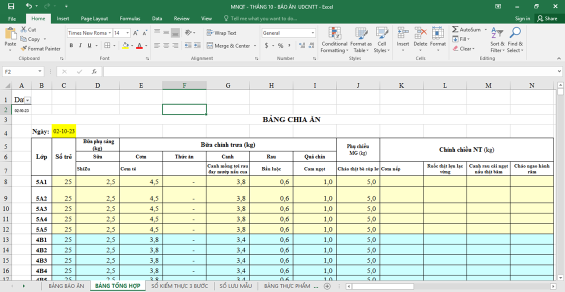 - Trước đòi hỏi sự đổi mới và giảm thời gian lao động chân tay cho đội ngũ nhân viên nuôi dưỡng. Đ/c Nguyễn Thị Kim Nhung- PHT phụ trách chuyên môn nuôi cùng các đ/c nhân viên nghiên cứu và thiết kế bảng “ Báo ăn online” trong đó tích hợp các loại sổ sách nuôi dưỡng, tự động hóa số liệu, tự động hóa cách tính toán chia ăn cho trẻ. Thông qua đó giúp cho nhân viên nuôi dưỡng giảm đi áp lực phải ghi chép sổ sách và tính toàn, chia ăn hàng ngày. Bình thường 1 nhân viên nấu ăn ghi chép sổ sách và tính ăn mất 2-2,5h mới xong thì nay chỉ cần 20-30 phút là hoàn thành.