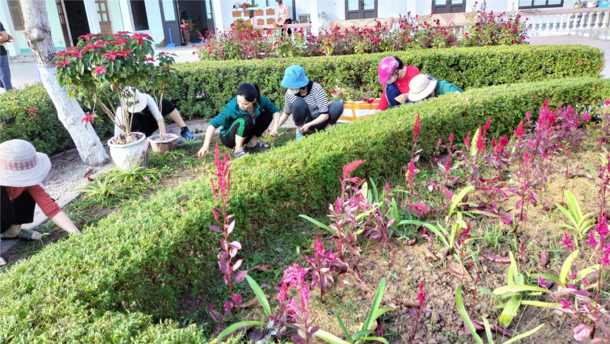 Sau đây là một số hình ảnh các cô giáo tích cực tạo môi trường “xanh - sạch - đẹp” cho trẻ tại trường mầm non Quốc Tuấn: