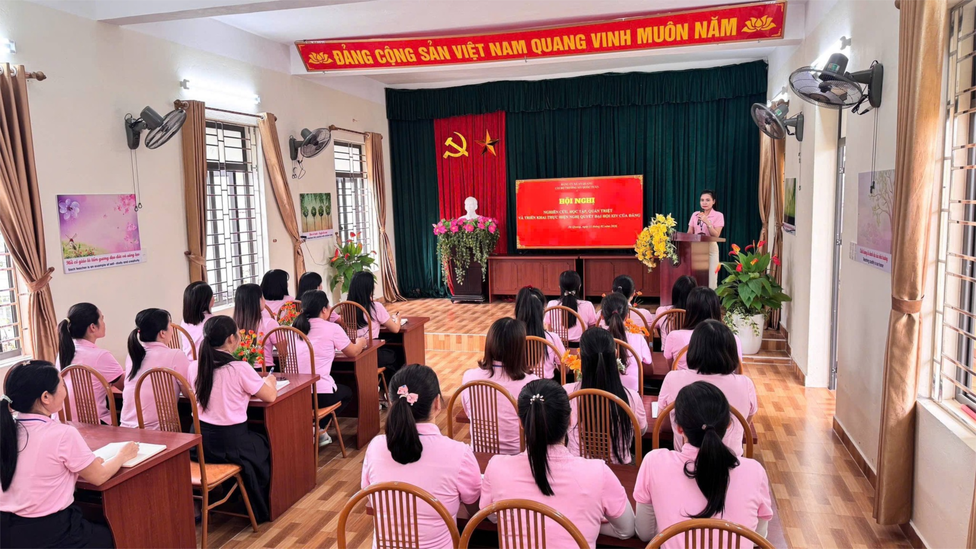Thực hiện Kế hoạch số 56-KH/ĐU ngày 04/02/2026 của Đảng ủy xã An Quang về tổ chức Hội nghị nghiên cứu, học tập, quán triệt và triển khai thực hiện Nghị quyết Đại hội đại biểu toàn quốc lần thứ XIV của Đảng, Chi bộ Trường Mầm non Quốc Tuấn đã tổ chức hội nghị nghiên cứu, học tập, quán triệt và triển khai Nghị quyết tới toàn thể cán bộ, đảng viên trong chi bộ.