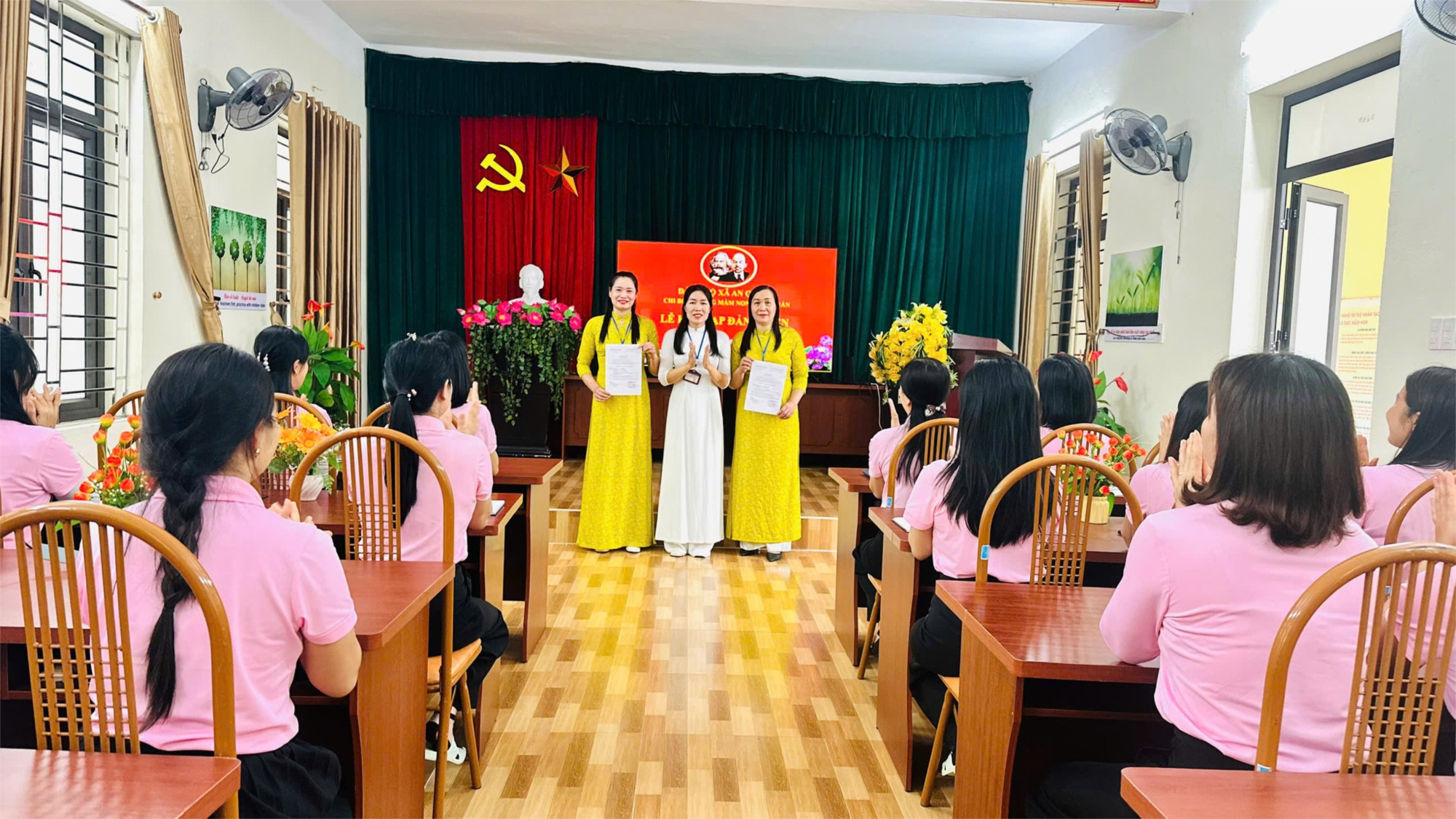 Xin chúc mừng đồng chí Phùng Thị Nga và đồng chí Đặng Thúy Phương! Chúc các đồng chí tiếp tục phát huy tinh thần trách nhiệm, giữ vững phẩm chất người Đảng viên, hoàn thành xuất sắc mọi nhiệm vụ được giao, đóng góp tích cực vào sự phát triển của nhà trường và địa phương.