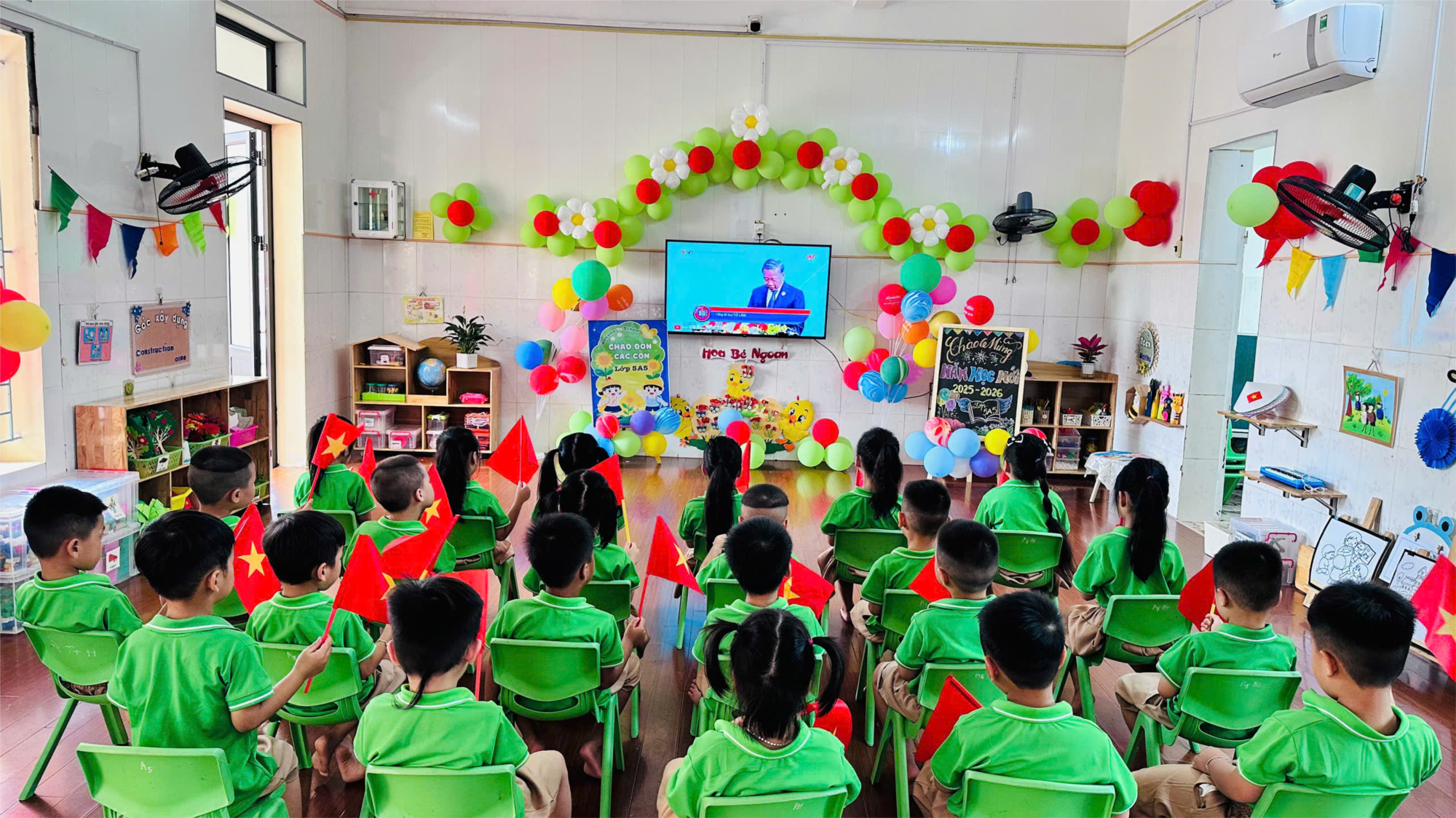 Ngày 05/9/2025, hòa chung trong không khí tưng bừng của Ngày hội toàn dân đưa trẻ đến trường, tập thể lớp 5A5 – Trường Mầm non Quốc Tuấn đã trang trọng tham dự Lễ khai giảng năm học 2025 – 2026 do Bộ Giáo dục và Đào tạo tổ chức trực tuyến, gắn với kỷ niệm 80 năm thành lập Bộ Quốc gia Giáo dục – dấu son tự hào của ngành giáo dục Việt Nam.