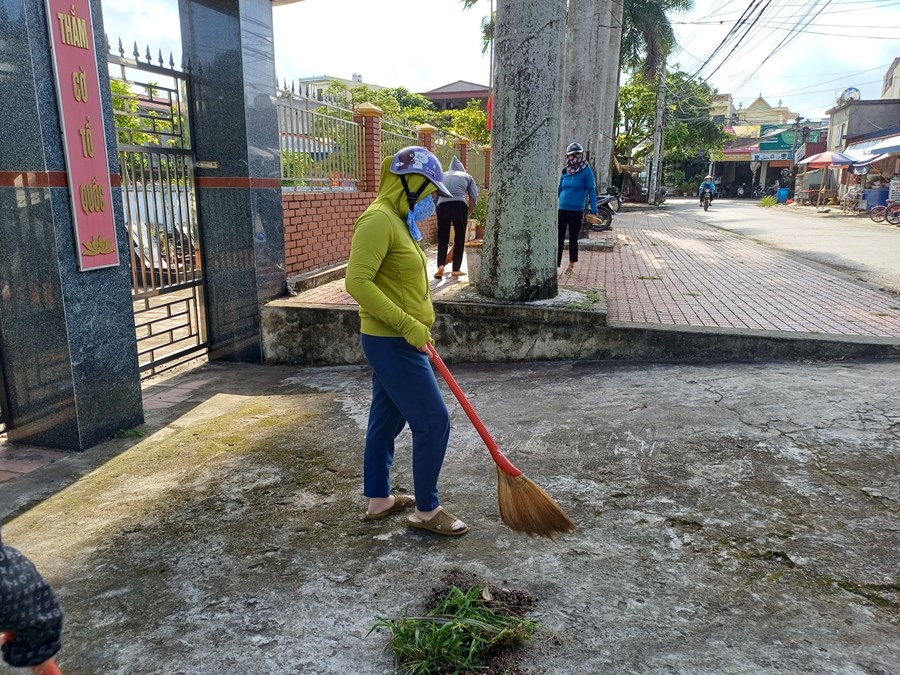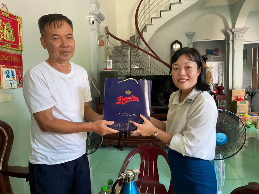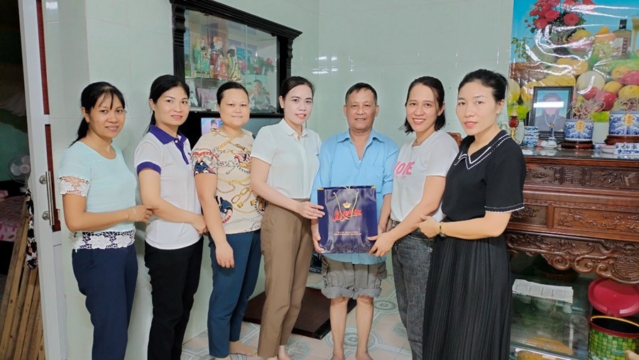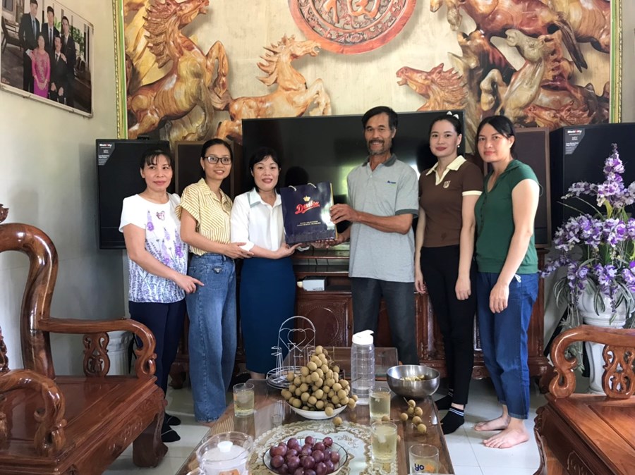 Đoàn đã đến thăm gia đình đồng chí Nguyễn Thị Kim Nhung - Phó hiệu trưởng nhà trường có bố chồng là ông Phạm Xuân Tơi là thương binh.