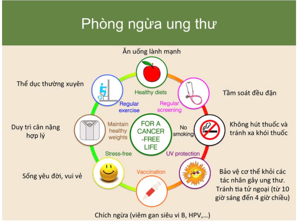 Tế bào ung thư phát triển thầm lặng. 80% ung thư có liên quan đến môi trường sống hằng ngày, bao gồm lối sống thiếu khoa học, các thói quen sinh hoạt, tật xấu như hút thuốc, uống rượu, chế độ dinh dưỡng không hợp lý và không an toàn. Nhiều bệnh ung thư có thể ngăn ngừa bằng cách tránh tiếp xúc trực tiếp với các yếu tố nguy cơ cao, chẳng hạn như khói thuốc lá, một số hóa chất độc hại.