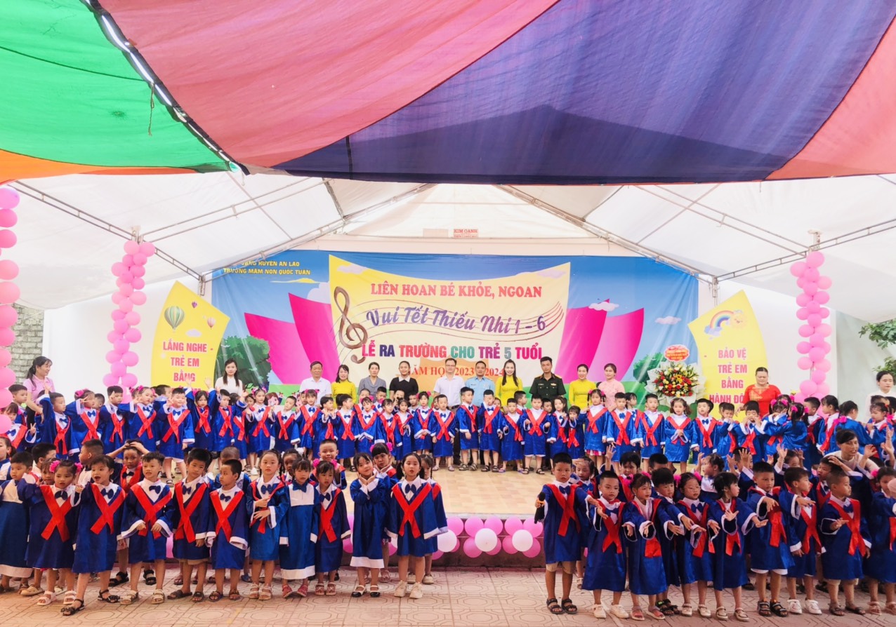 Được sự chỉ đạo của PGD và Đào tạo huyện An Lão, sự quan tâm của Đảng Ủy Hội Đồng Nhân Dân- UBND - UBMTTQ xã Quốc Tuấn. Sáng ngày 30/05/2024 - trường Mầm non Quốc Tuấn long trọng tổ chức chương trình “Liên hoan Bé khỏe - ngoan; Vui tết thiếu nhi 1/6 và lễ ra trường cho bé 5T năm học 2023-0224”.