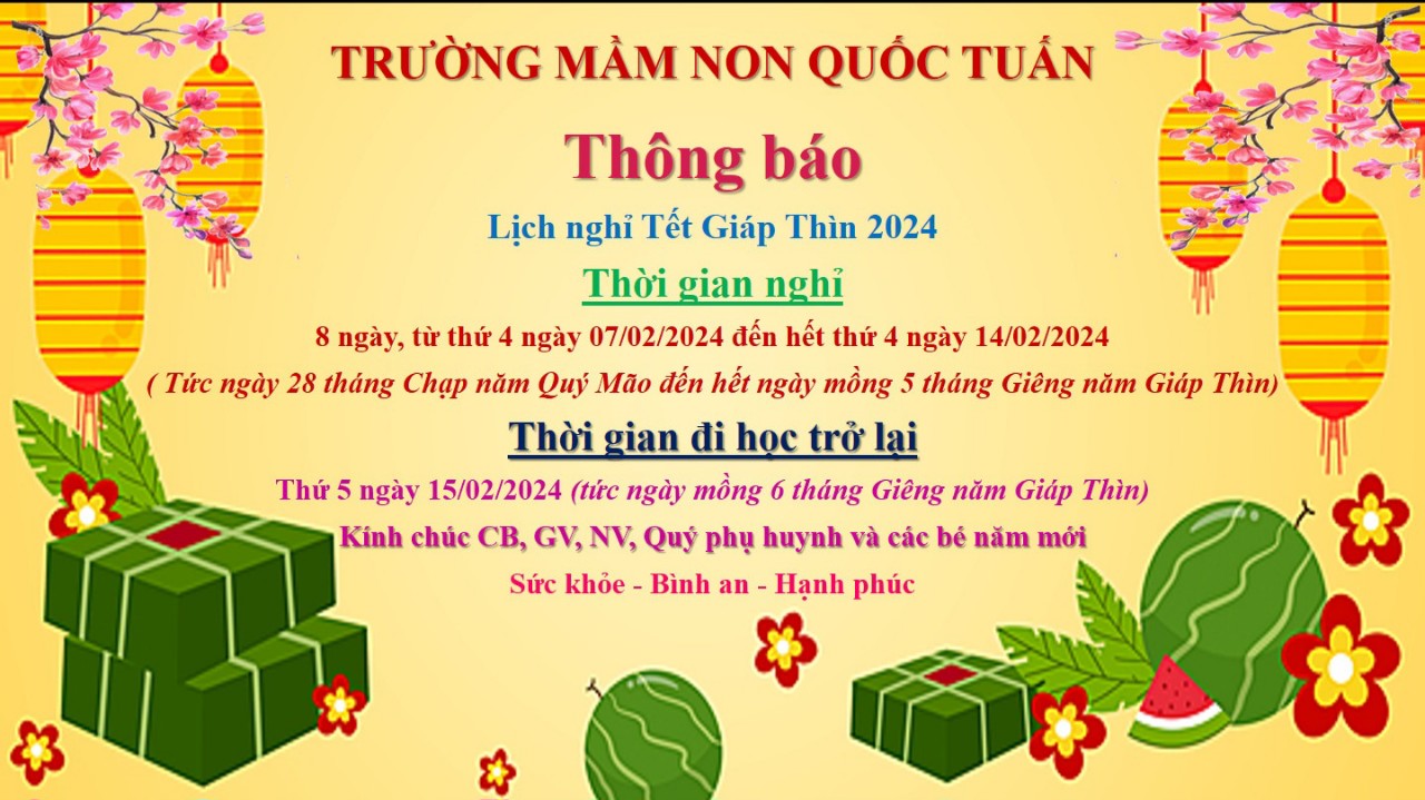 🧧Thời gian nghỉ Tết Nguyên đán: Các con được nghỉ học 08 ngày (bắt đầu từ