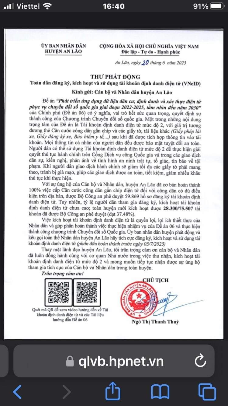 Thực hiện Đề án " Phát triển ứng dụng dữ liệu Dân cư, định danh và xác thực điện tử phục vụ chuyển đổi số quốc gia giai đoạn 2022-2025, tầm nhìn đến năm 2030". Và hưởng ứng thư phát động của Chủ tịch UBND huyện An Lão. Trường MN Quốc Tuấn phát động toàn thể CB,GV,NV trong nhà trường đến trụ sở xã Quốc Tuấn đăng ký kích hoạt định danh điện tử cá nhân và tuyên truyền, động viên, giúp đỡ người thân, hàng xóm cùng tham gia kích hoạt định danh điện tử.