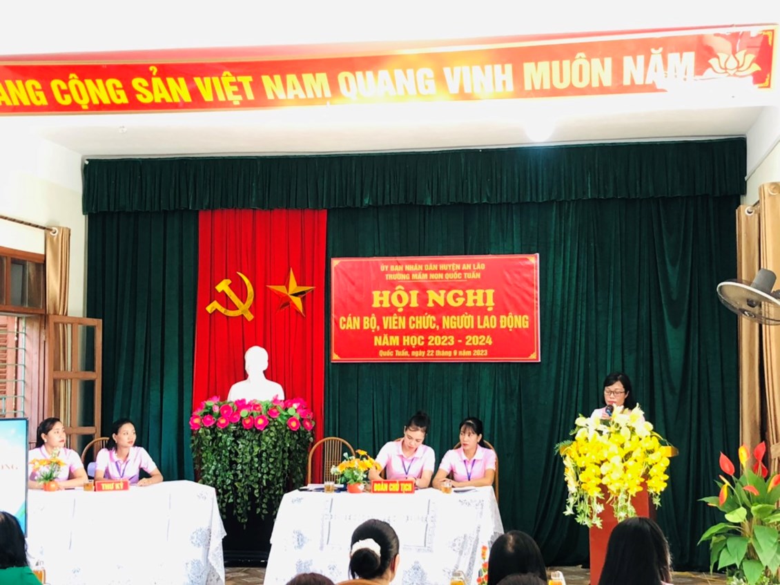 Sáng ngày 22/9/2023 trường Mầm non Quốc Tuấn long trọng tổ chức Hội nghị “Cán bộ, viên chức và người lao động” năm học 2023-2024.