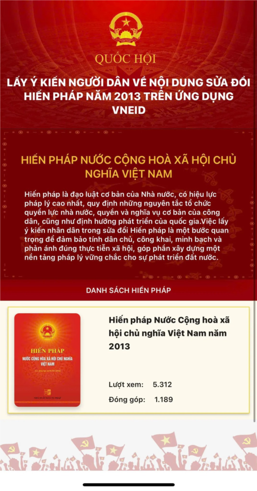 ung một số điều của Hiến pháp năm 2013 trên VNeID”.