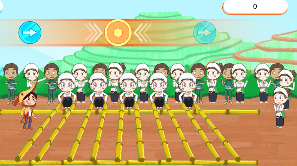 Giáo viên sẽ đặt hai sạp cách nhau với một khoảng cách nhất định sau đó gác hai đầu với những cây sạp con đặt song song với nhau cứ như vậy xếp thành một hàng dài. Khoảng cách giữa các cây sạp khoảng 20 cm giúp cho các bé nhảy được dễ dàng. Các bé sẽ cùng nhảy nhịp nhàng theo điệu nhạc núi rừng Tây Bắc.