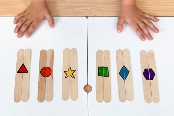 Cách chơi: Bố mẹ xáo trộn các que kem lên và cho các bé tìm để sắp xếp lại thành một bức tranh hoàn chỉnh. Sau khi bé chơi quen, bố mẹ có thể tăng độ khó lên bằng cách tăng số lượng que kem, hoặc trộn nhiều bức tranh vào nhau. Cũng có rất nhiều trò chơi sáng tạo từ que kem khác như xếp nhà, làm ống đựng bút,… chỉ bằng keo nến và sơn vẽ.