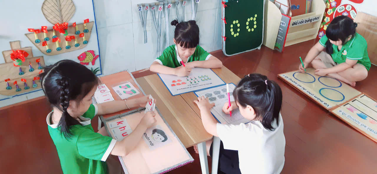 Dưới đây là một số hình ảnh của buổi hoạt động góc của lớp 5 tuổi A5: